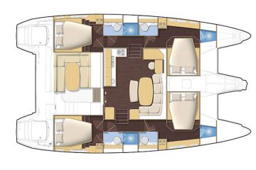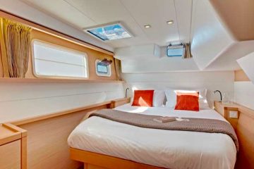 Roza los 14 metros de eslora con una manga ancha de casi 8 metros y una distribución que aporta mejor habitabilidad y confort. Y es que con este catamarán, además de navegar mejor, viajaremos en el más cómodo y lujoso apartamento.